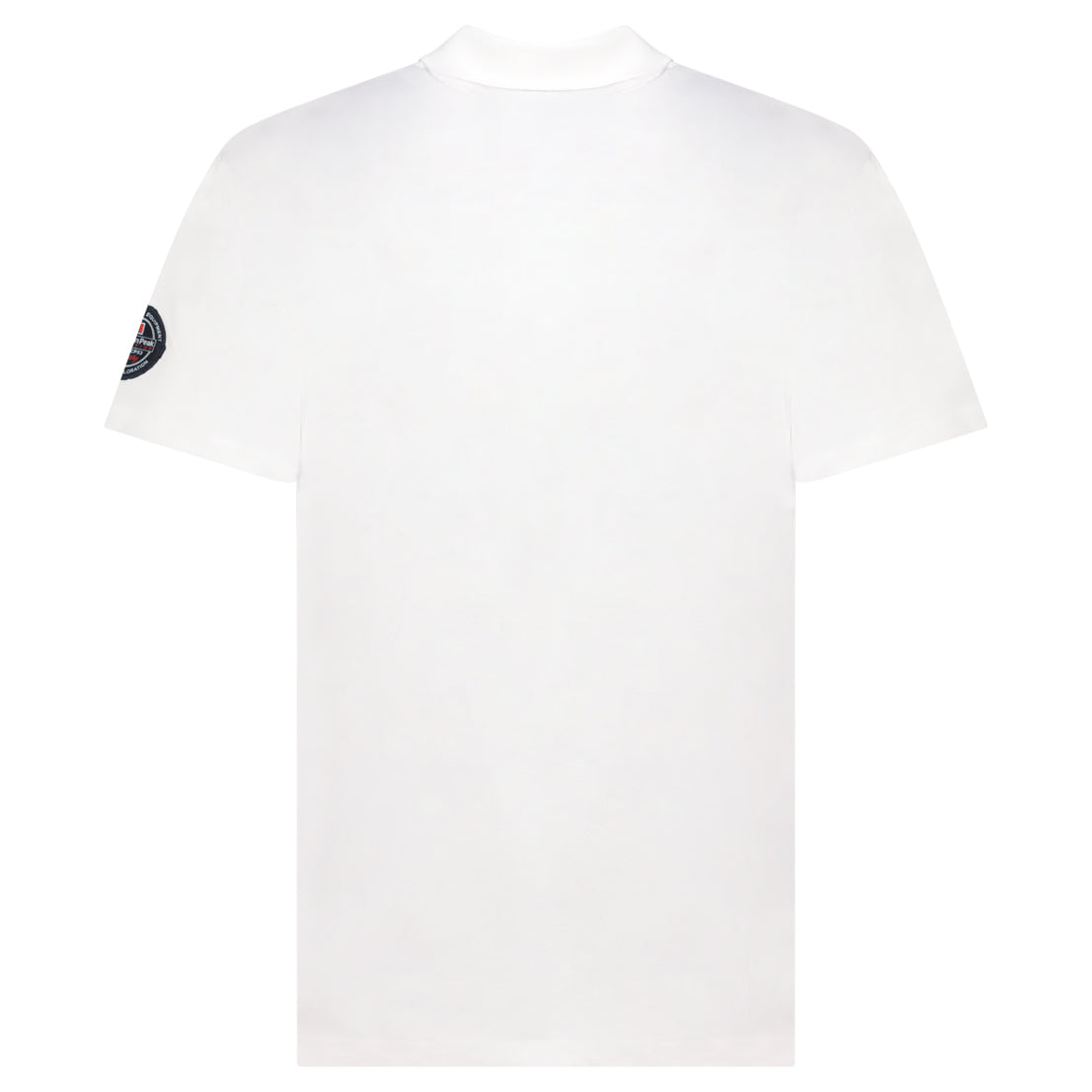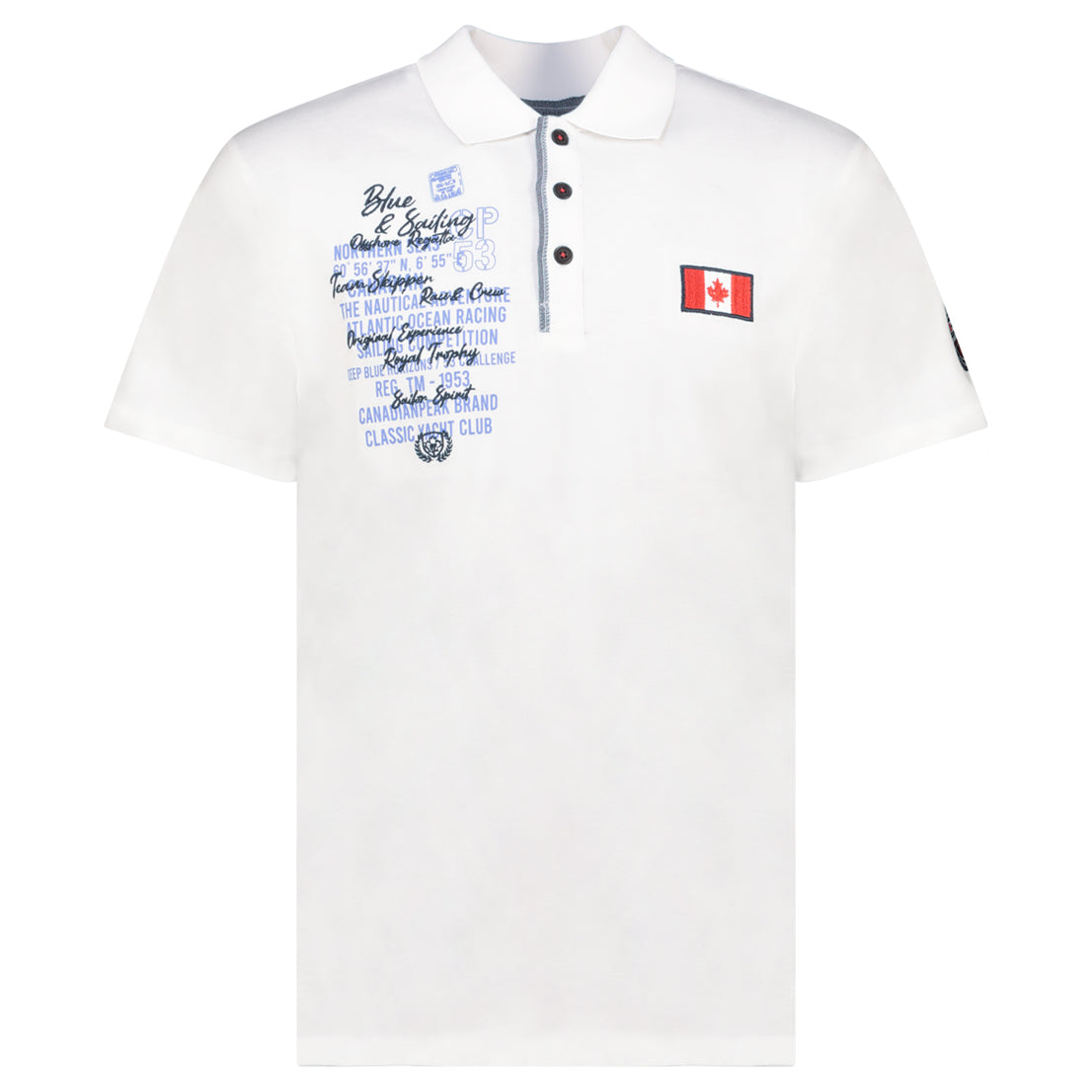Canadian Peak KANCREAK Homme - Polo Col Boutonné avec Drapeau, Impressions et Badge Blanc