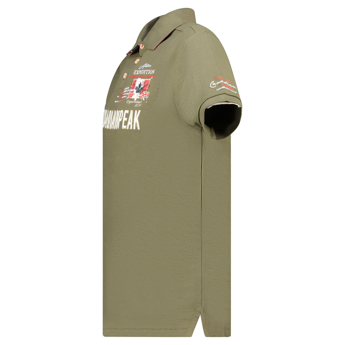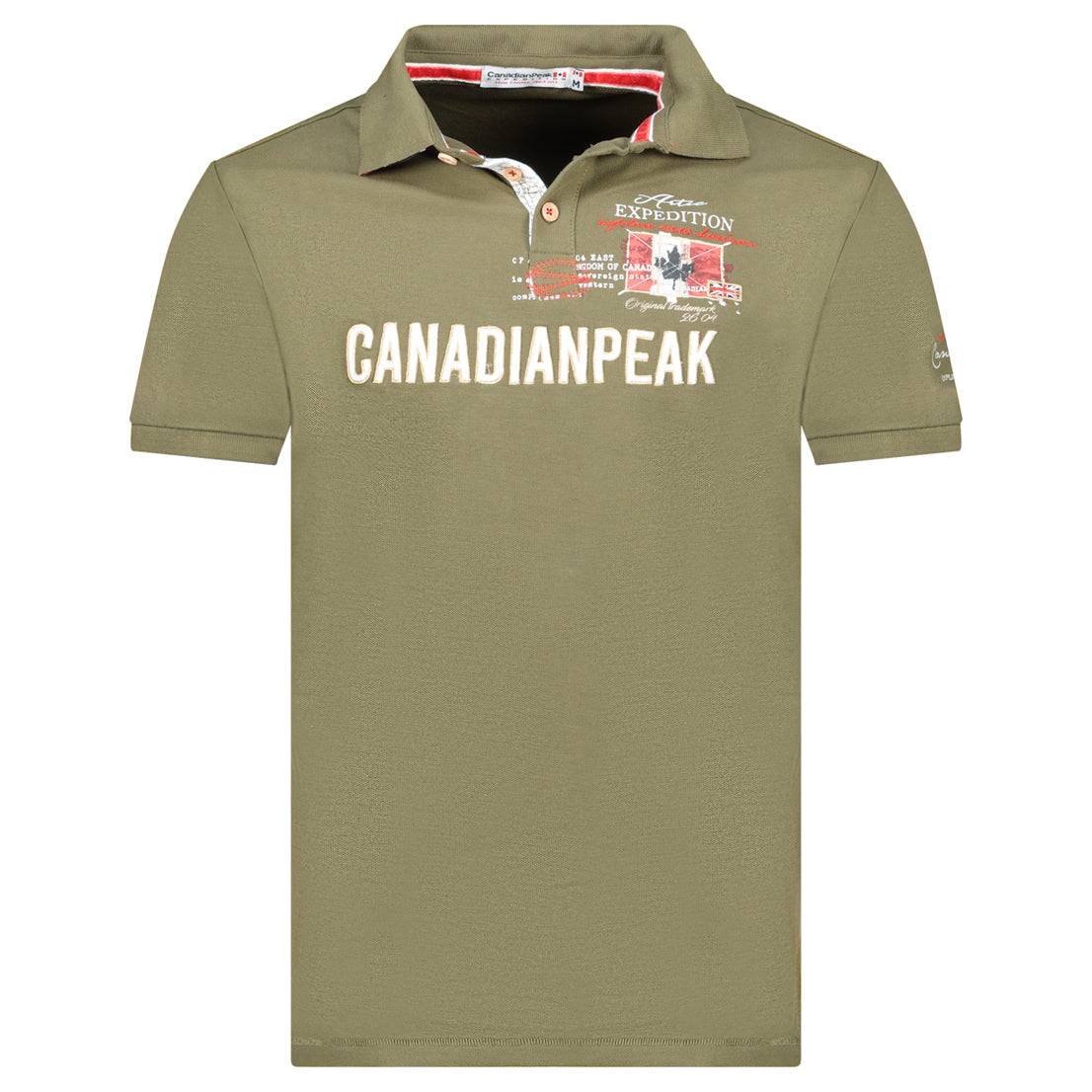 Canadian Peak KASONEAK Homme - Polo Col Boutonné avec Impressions et Drapeau Kaki