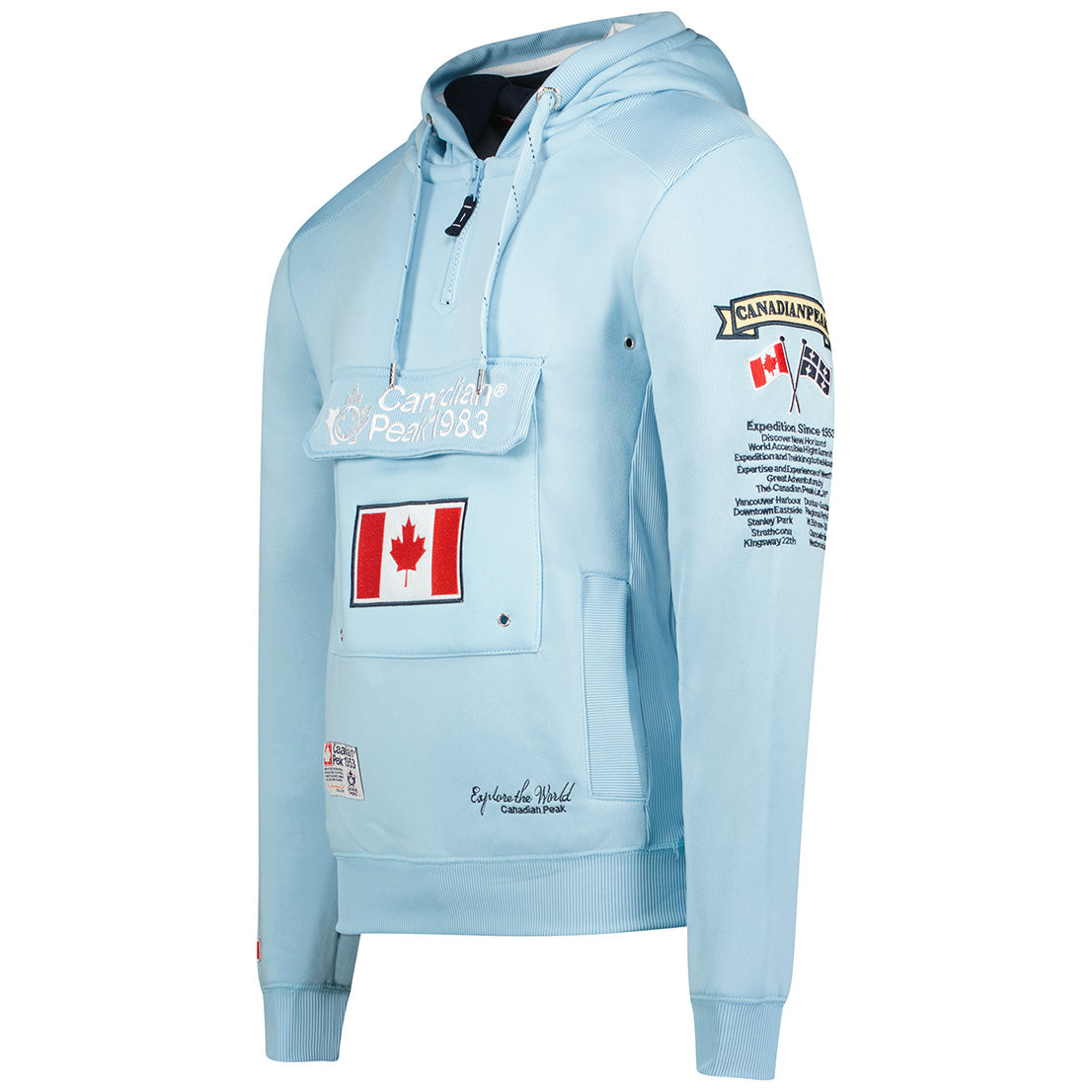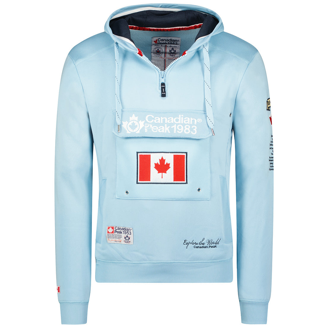 €89,00 EUR€45,50 EUR / Canadian Peak Galapagos Homme - Sweat à Capuche avec Poches avec Logo Bleu CielÉconomisez 49%