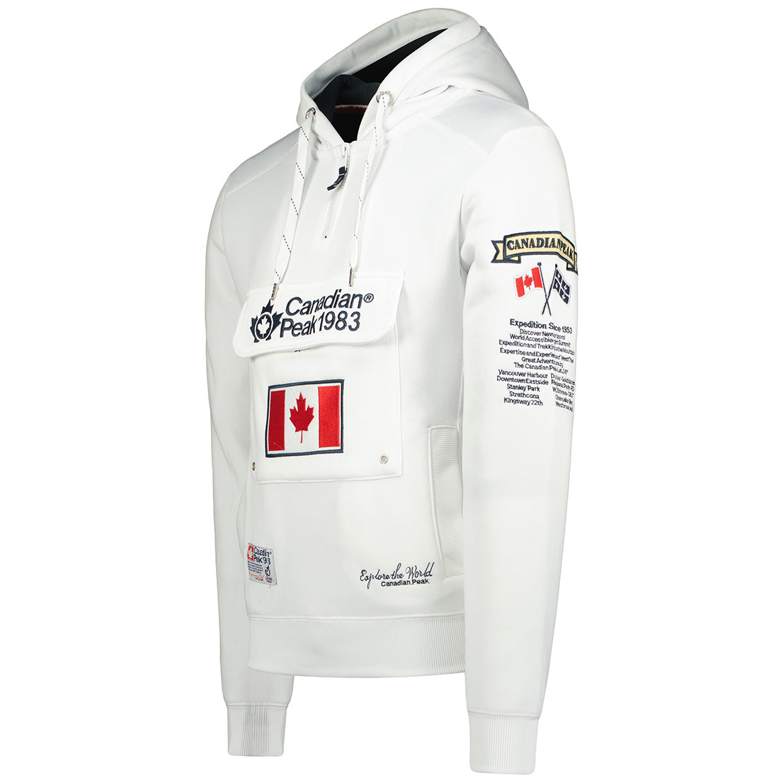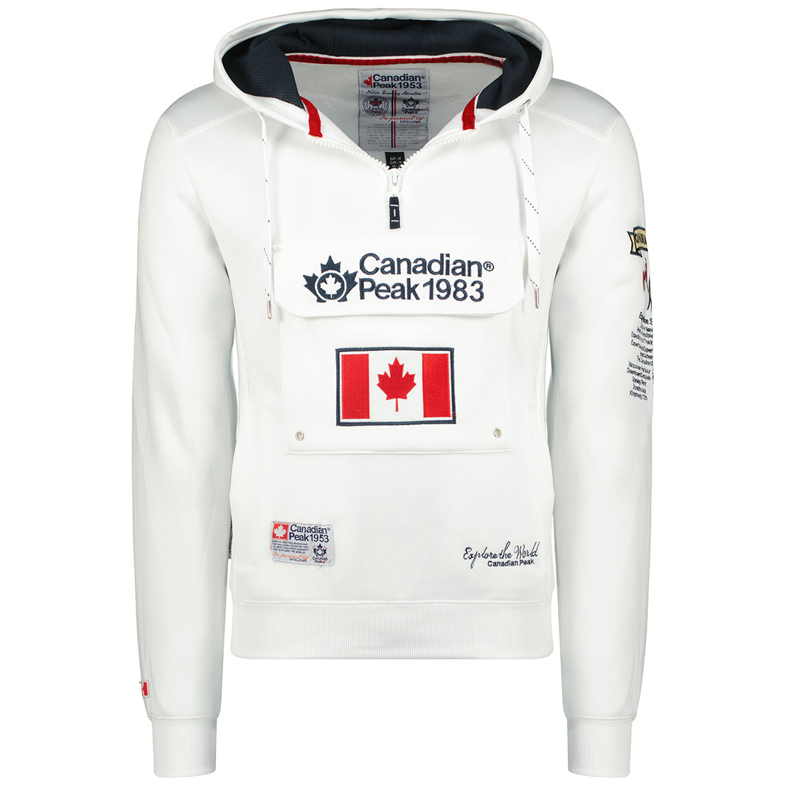 €89,00 EUR€45,50 EUR / Canadian Peak Galapagos Homme - Sweat à Capuche avec Poches avec Logo BlancÉconomisez 49%