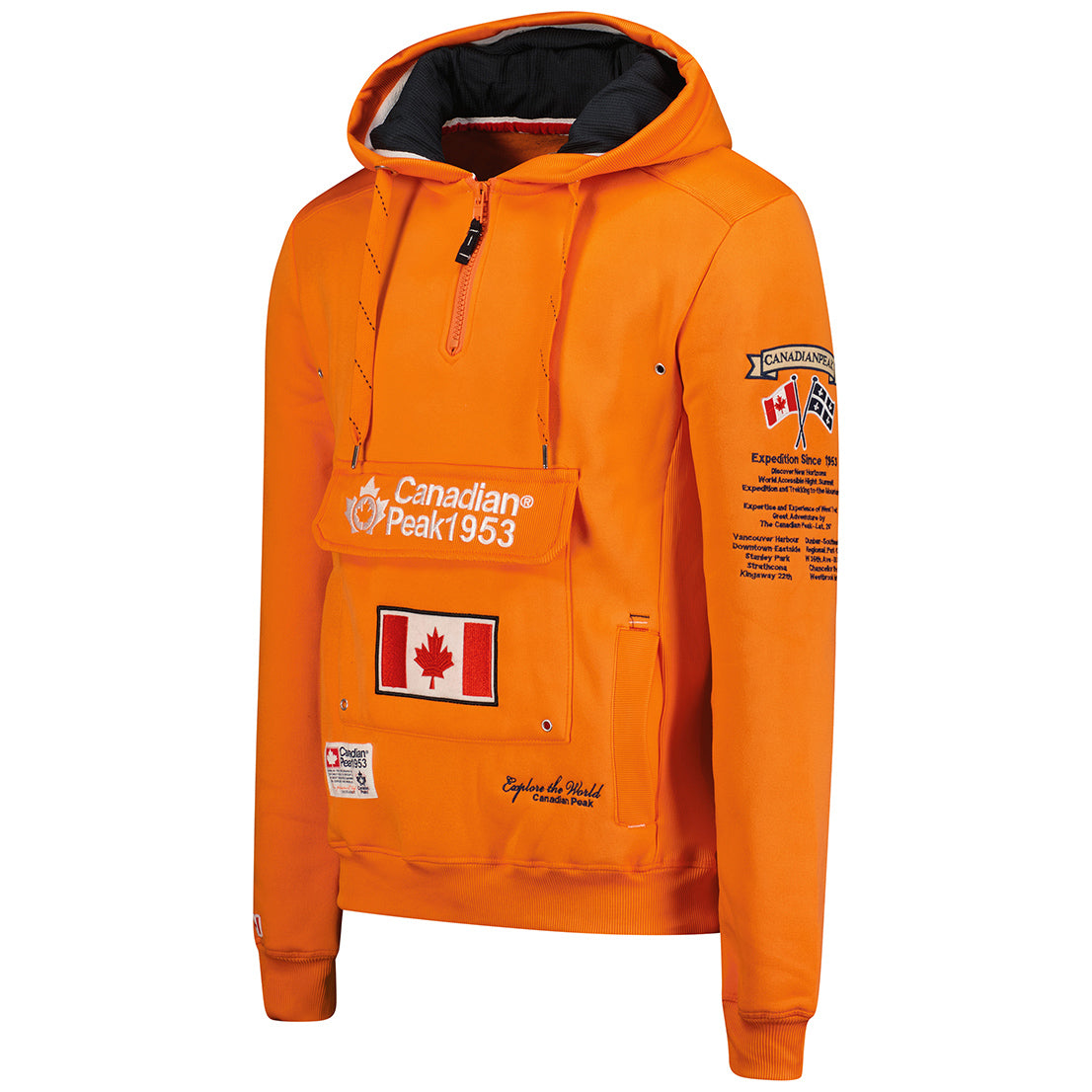 €89,00 EUR€45,50 EUR / Canadian Peak Galapagos Homme - Sweat à Capuche avec Poches avec Logo Orange FlashÉconomisez 49%