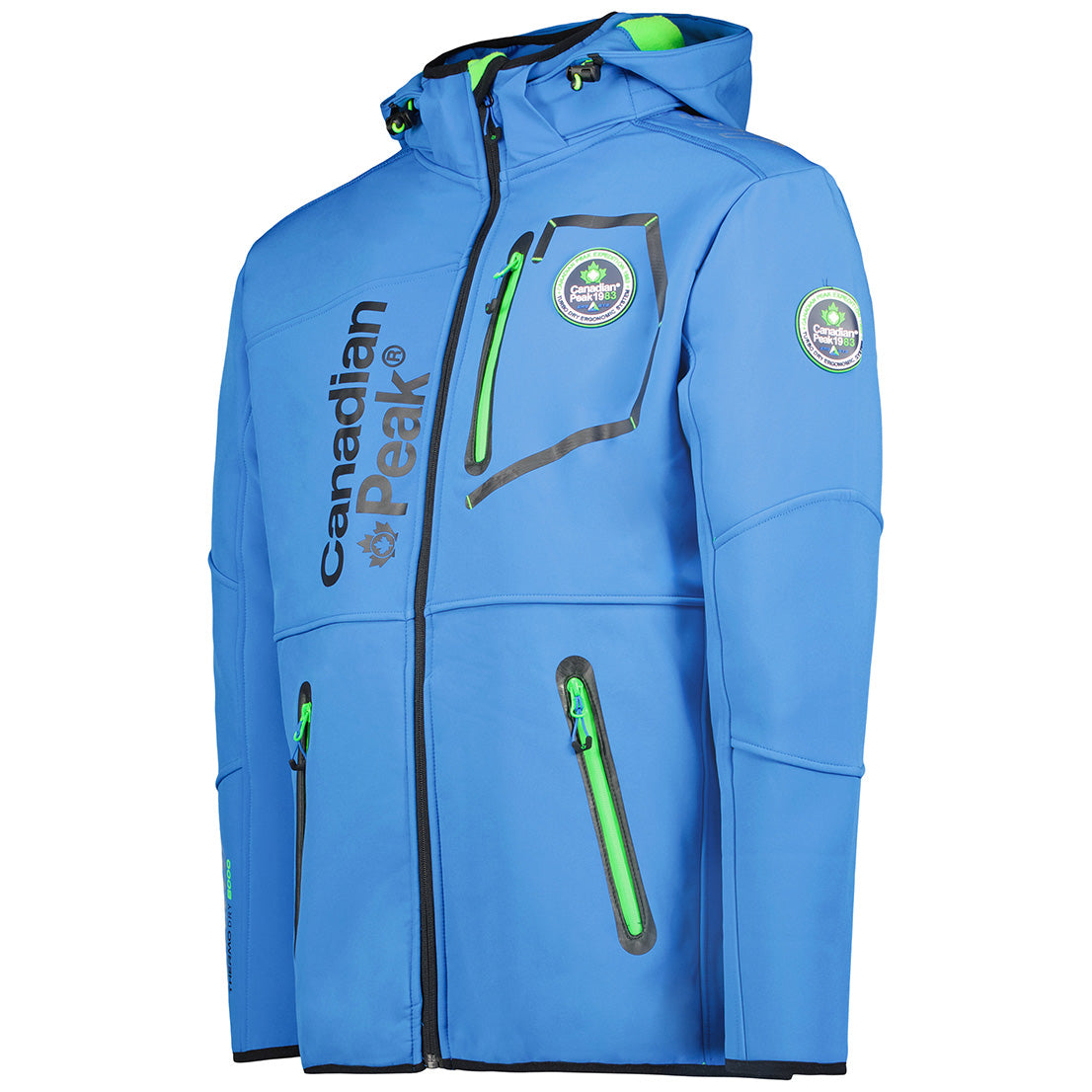 Canadian Peak ROYAUTEAK Homme - Veste Softshell avec Capuche Détachable et Poches Zippées Bleu Royal Vert