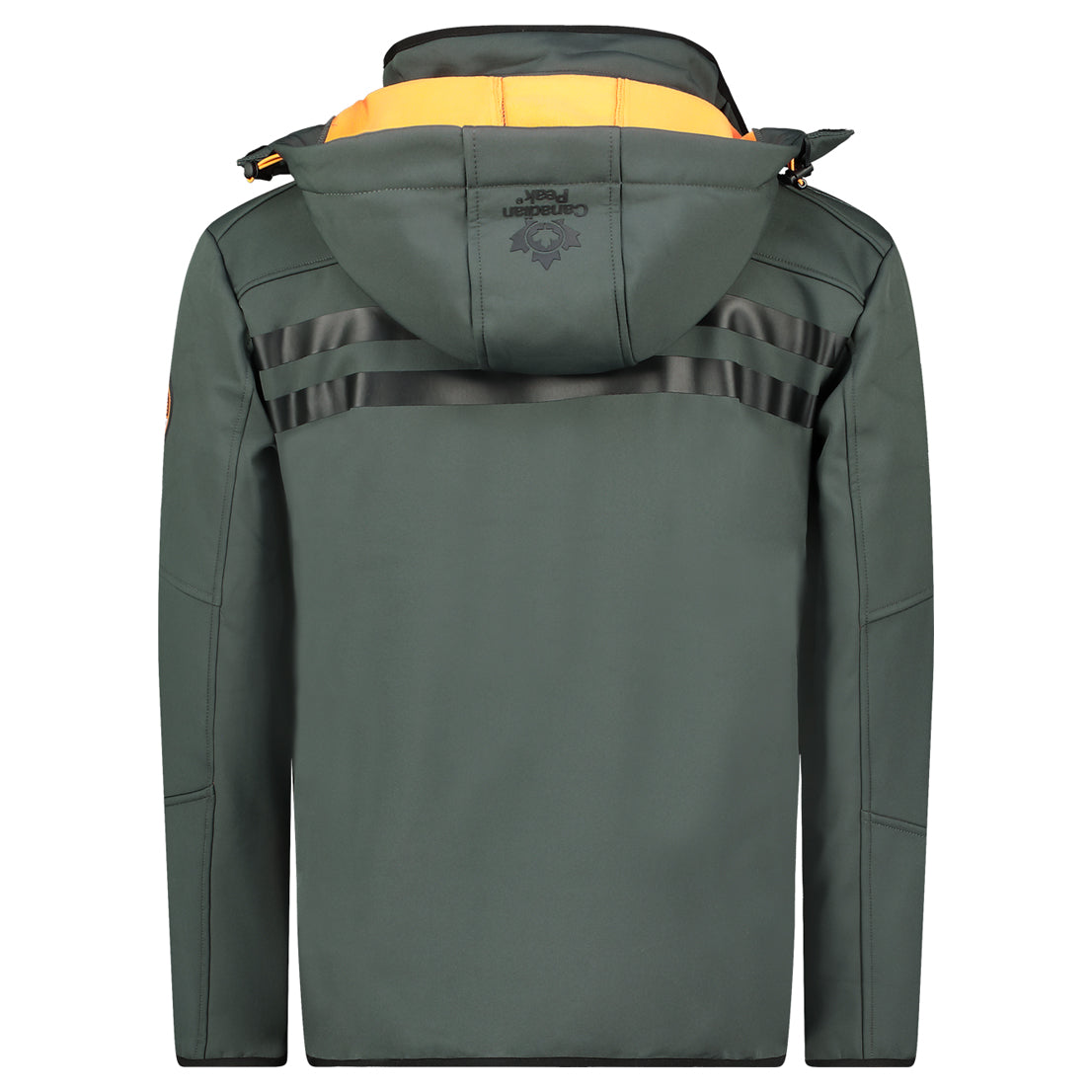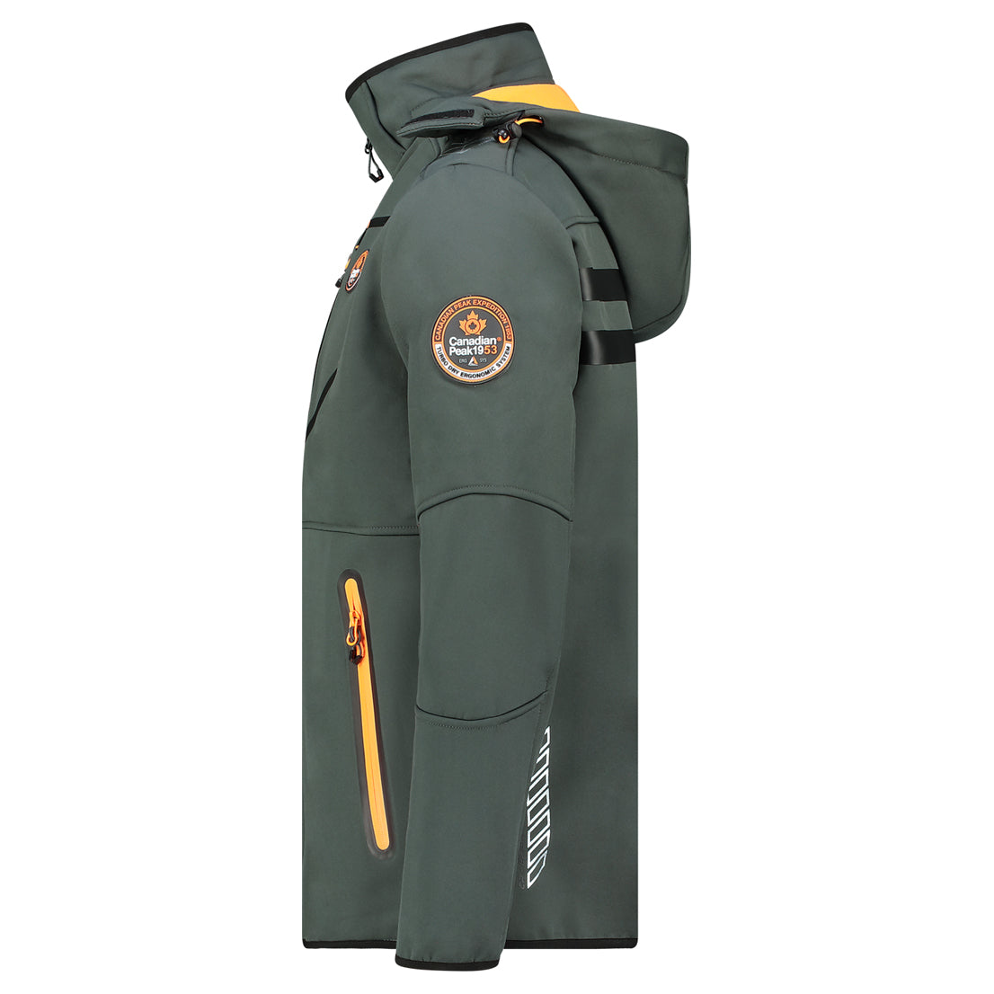 Canadian Peak ROYAUTEAK Homme - Veste Softshell avec Capuche Détachable et Poches Zippées Gris Fonce Orange