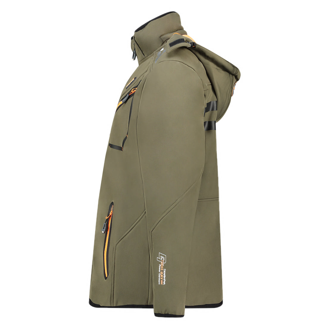 Canadian Peak ROYAUTEAK Homme - Veste Softshell avec Capuche Détachable et Poches Zippées Kaki Orange
