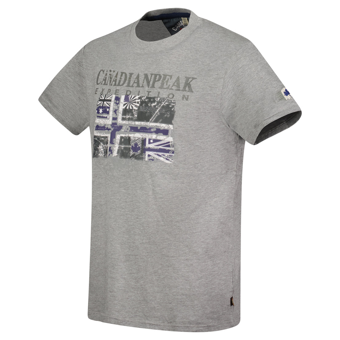 Canadian Peak JALONEAK Homme - T-Shirt Col Rond avec Impressions et Drapeau Gris Clair